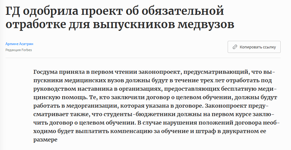 Случайно увидел эту поебень и звучит так как будто никто нахуй не пойдет на врачей теперь. Кому оно надо 10 лет учиться и потом еще на 3 года в деревню уезжать