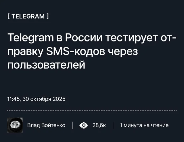Telegram начал поэтапно разворачивать в РФ функцию отправки SMS-кодов за счёт пользователей.