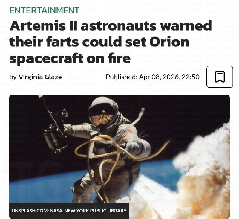 Оказывается, пердунов могут не взять в космонавты. По словам научного эксперта, астронавтов лунной миссии Artemis II предупредили, что их газы теоретически могут вызвать пожар