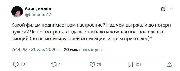 Хрюкающий Подсвинок3 часа назад2 Если бы сейчас собрался смотреть комедию то пожалуй Убойные каникулы