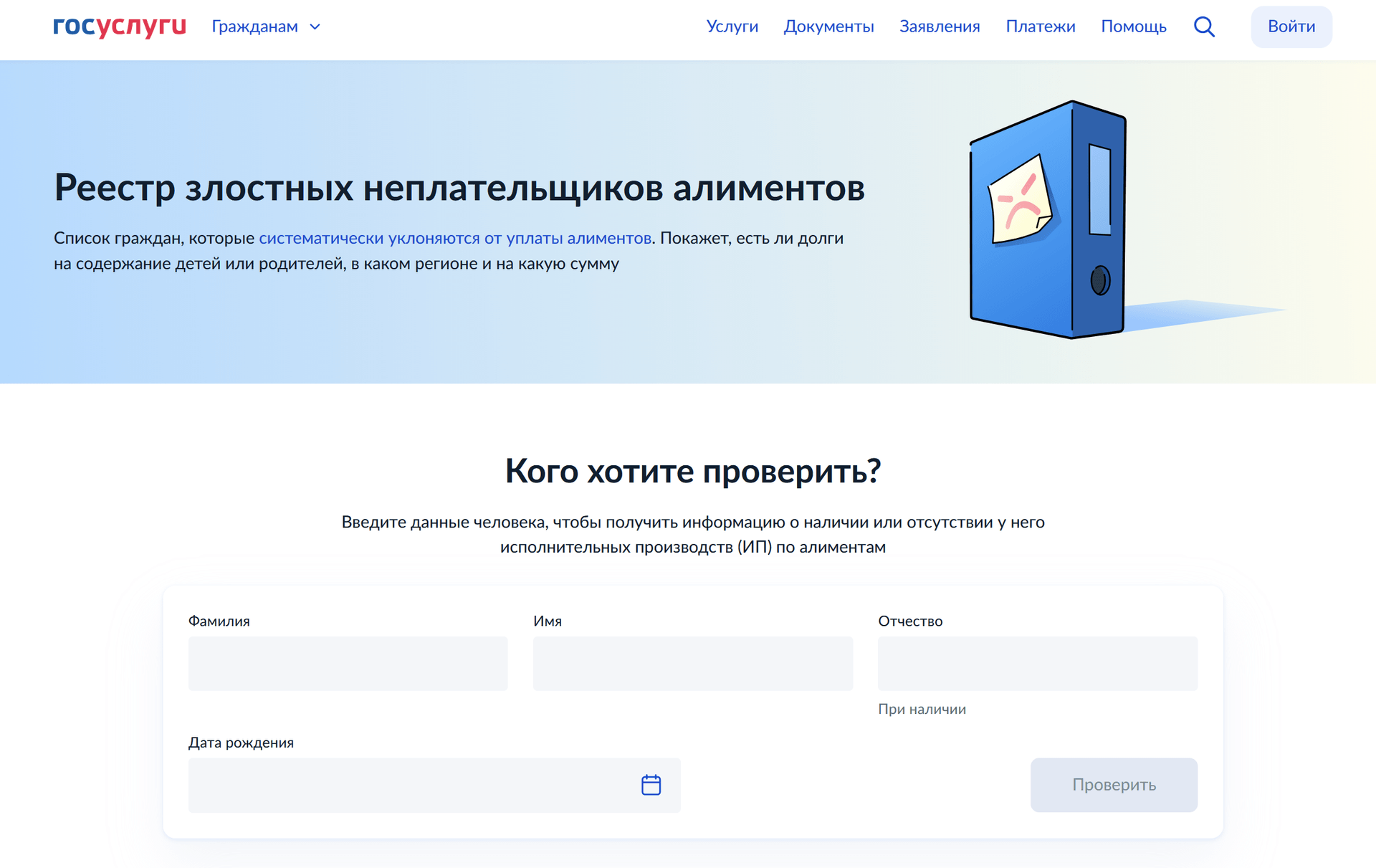 sardelkinНовости5 дней назадРеестр злостных неплательщиков алиментов🌍https://www.gosuslugi.ru/fssp-alimony