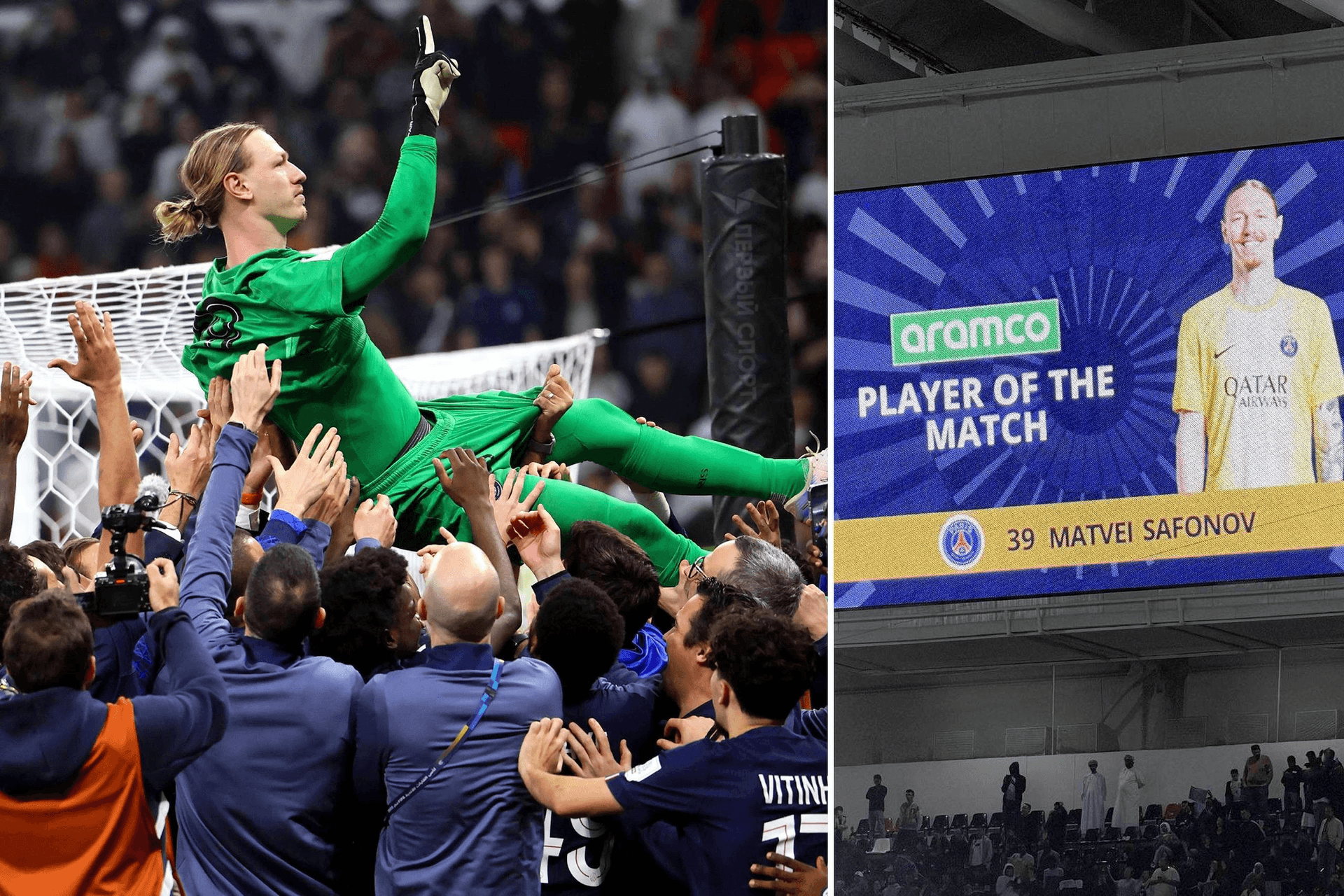 Вратарь сборной России завоевал трофей ФИФА, проведя на поле все 120 минут и вытащив серию пенальти с «Фламенго». Это уже шестой трофей Сафонова за 1,5 года в «ПСЖ»: до этого Матвей выиграл с клубом ЛЧ, Суперкубок УЕФА, Лигу 1, Кубок и Суперкубок Франции. Теперь весь следующий год на форме «ПСЖ» будет нанесена чемпионская нашивка от ФИФА: после серии пенальти все футболисты парижан качали на руках Сафонова