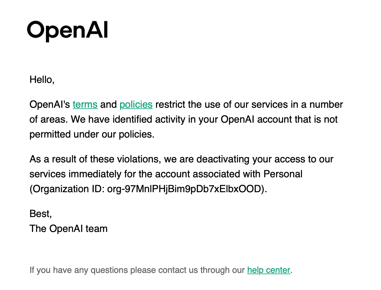 Ближневосточный Чай7 дней назадСнова меня забанил OpenAI...Новый акк продержался меньше месяцаНа этот раз причина бана не указана
