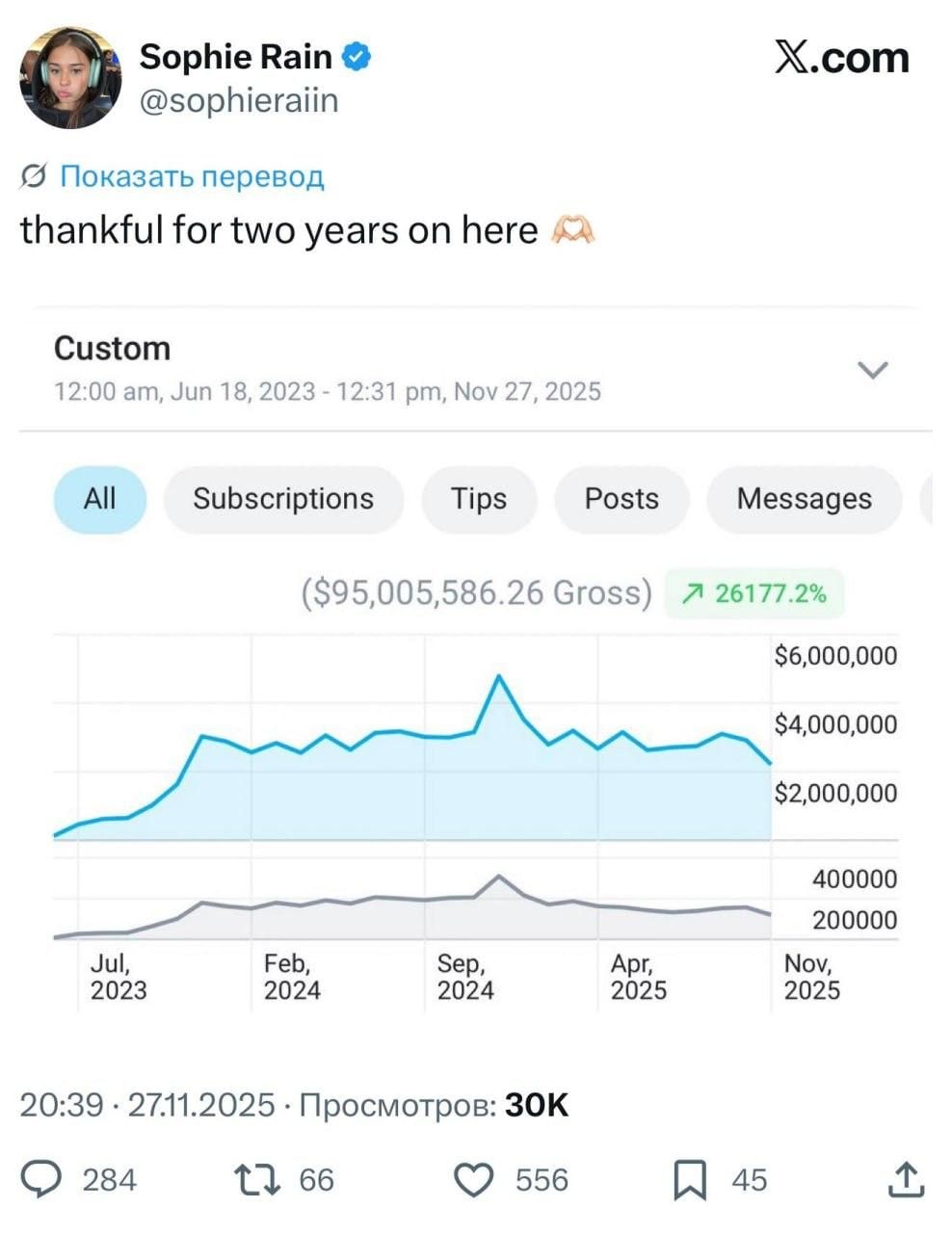 Российский ЧайОффтоп15 дней назад21-летняя онлифанщица Софи Рейн заработала $96 млн. (7,5 млрд. руб) за 28 месяцев. Это рекорд площадки.